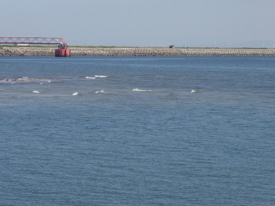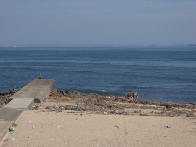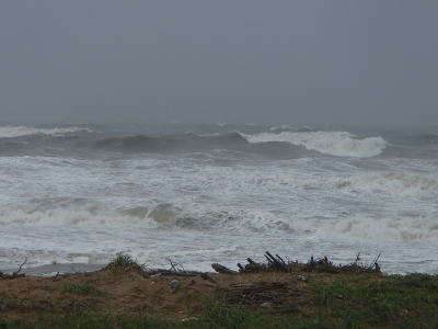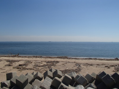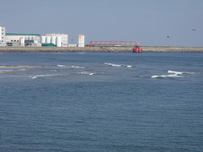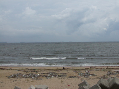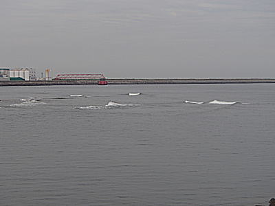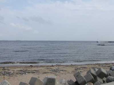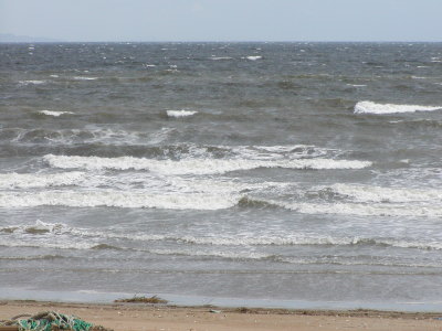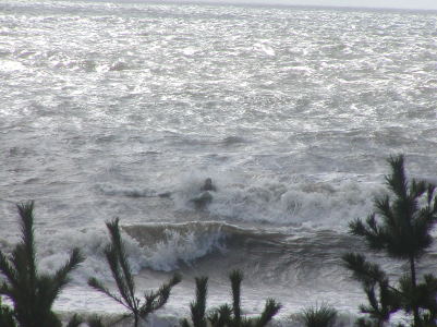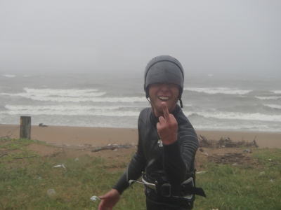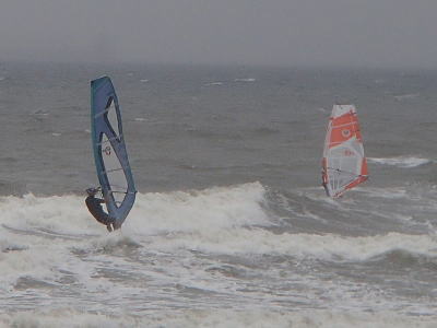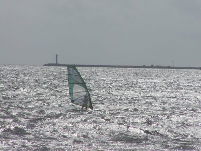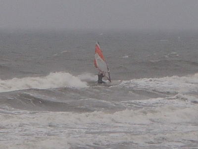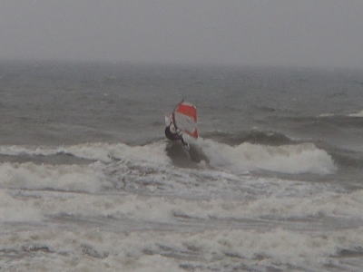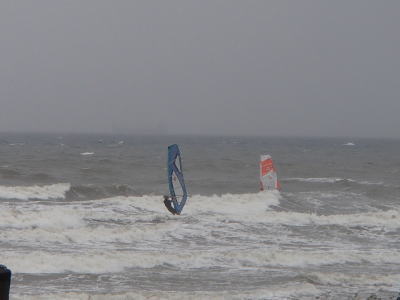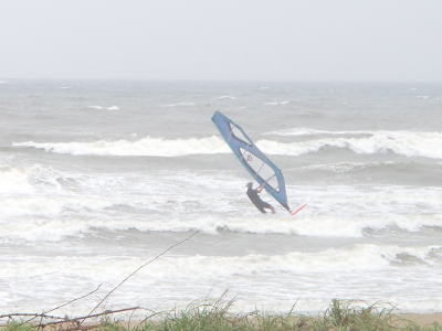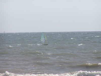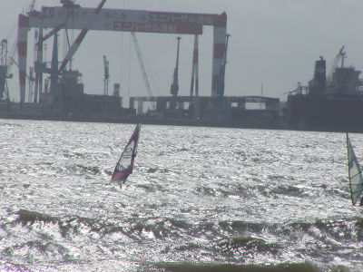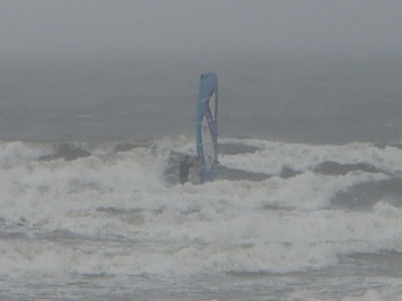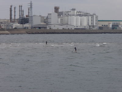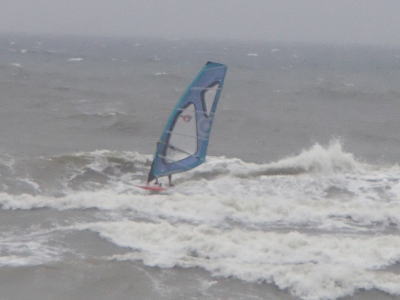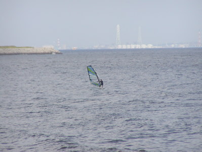 ←行きに磯山偵察。思った通りのドオンショア・・。 サーファーライド中。風は4.7でもいけるぐらい。 ドオンはパスです。 |